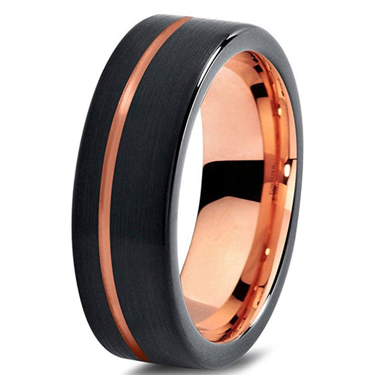 Brushed Matte Black Tungsten Carbide with Rose Gold Plated Edges Wedding Ring Set
