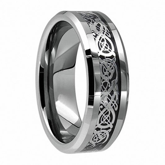 His & Hers Silver Celtic Dragon Inlay Tungsten Carbide Wedding Ring Set