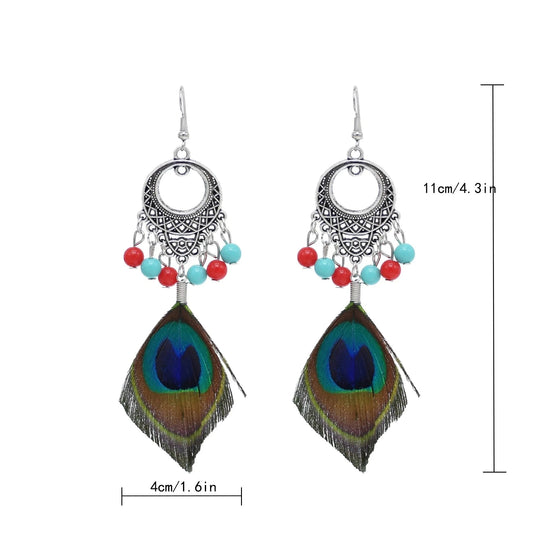Peacock Nature Feather Stud Earrings for Women