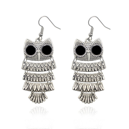 Antique Bronze & Silver Bohemian Owl Stud Earrings Women’s Jewelry