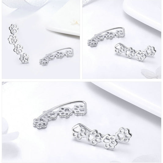 925 Sterling Silver Dog’s Paw Trail Stud Earrings Women’s Jewelry