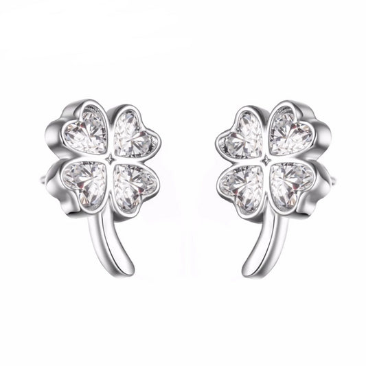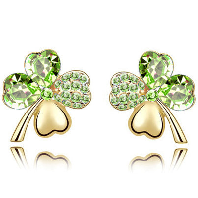 Four Leaf Clover with Green Cubic Zirconia Studded Earrings
