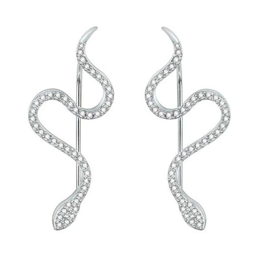 925 Sterling Silver Snake with Inlaid Cubic Zirconia Stud Earrings