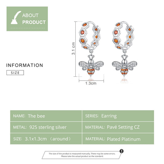 925 Sterling Silver Honeycomb Bee Stud Earrings