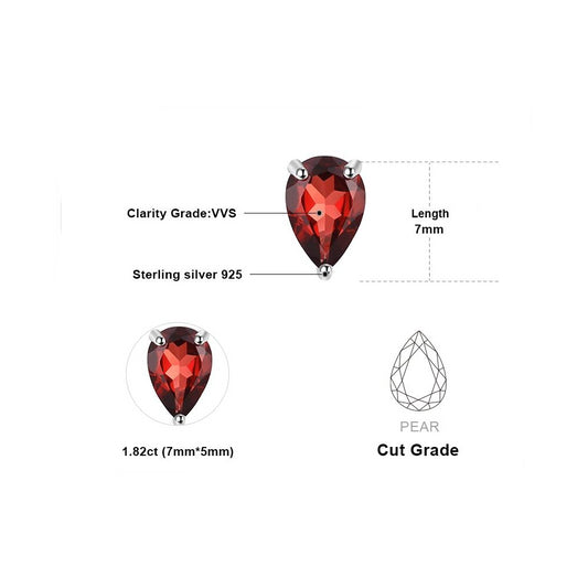 1.8ct Water Drop Natural Garnet Solid Stud Earrings 925 Sterling Silver