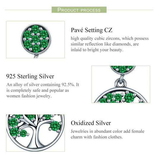 925 Sterling Silver Tree of Life Green Cubic Zirconia Drop Earrings