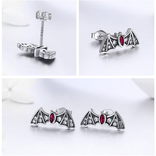 925 Sterling Silver Mysterious Bat Dazzling Stud Earrings