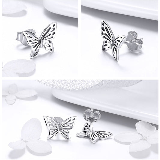925 Sterling Silver Dreamy Butterfly Stud Earrings for Women