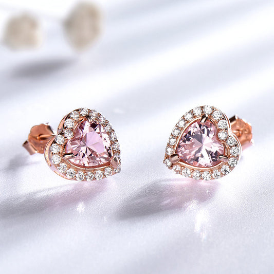 Morganite and Heart Cubic Zirconia 925 Sterling Silver Stud Earrings