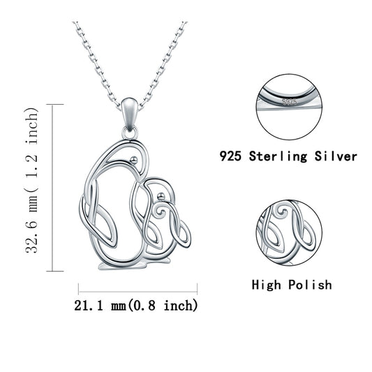 Mother and Child Penguin Pendant 925 Sterling Silver Necklace