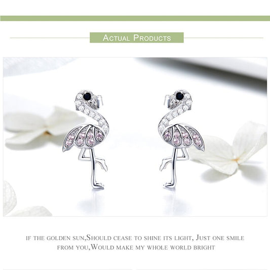 925 Sterling Silver Flamingos with Cubic Zirconia Stud Earrings