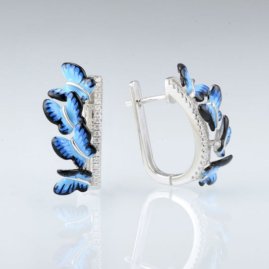 925 Sterling Silver Cubic Zirconia Stud Blue Butterfly Earrings