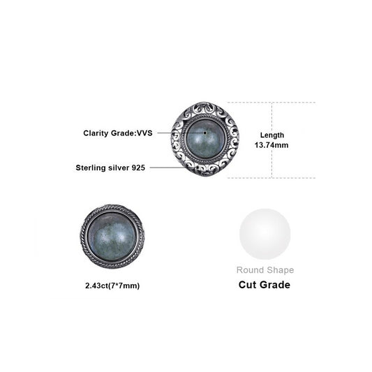 2.4ct Genuine Labradorite Carved Stud Earrings 925 Sterling Silver