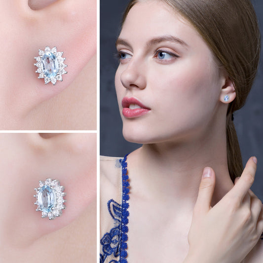 925 Sterling Silver Topaz Gemstone Stud Earrings