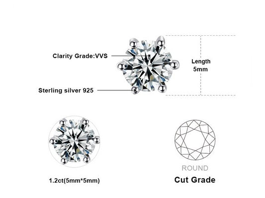 1.2ct Natural White Topaz Stud Earrings 925 Sterling Silver