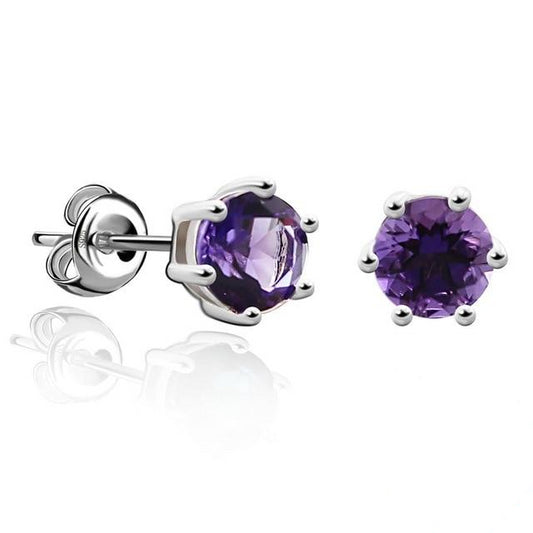 925 Sterling Silver Amethyst Citrine Garnet Peridot Blue Topaz Round Stud Earrings