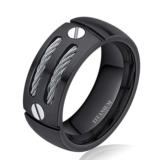 8mm Cable & Screw Inlay Black Titanium Wedding Band