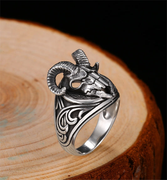 Sheep Skull 925 Sterling Silver Biker Vintage Ring