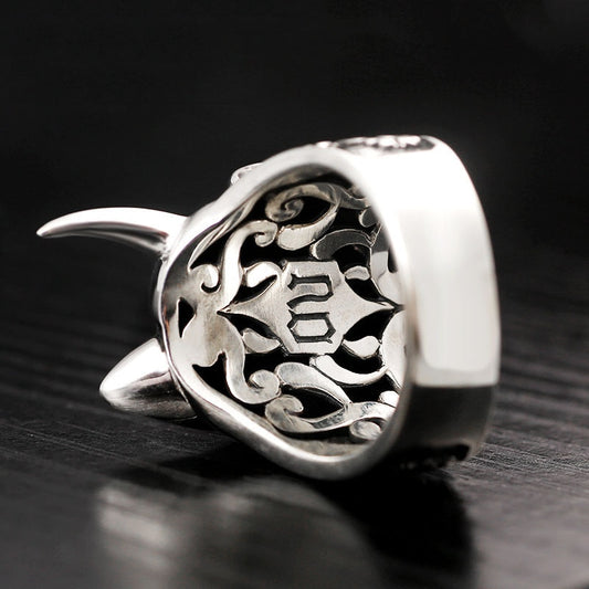 Gothic Devil Skull Face 925 Sterling Silver Vintage Ring