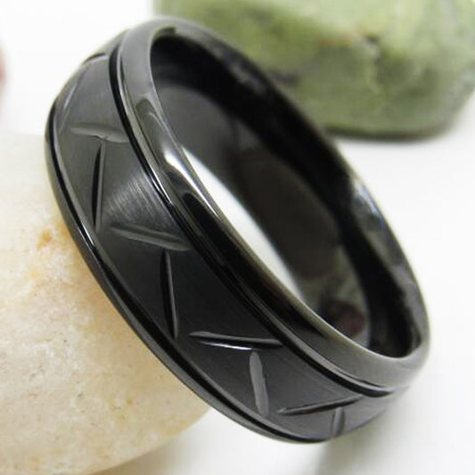 Diagonal Grooves Tyre Black Tungsten Carbide Wedding Band