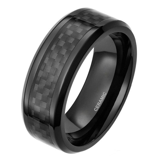 Black Carbon Fiber Inlay Ceramic Wedding Band