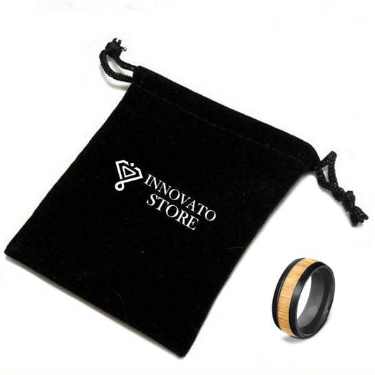 Black Tungsten Ring with Mahogany Wood Inlay for Men