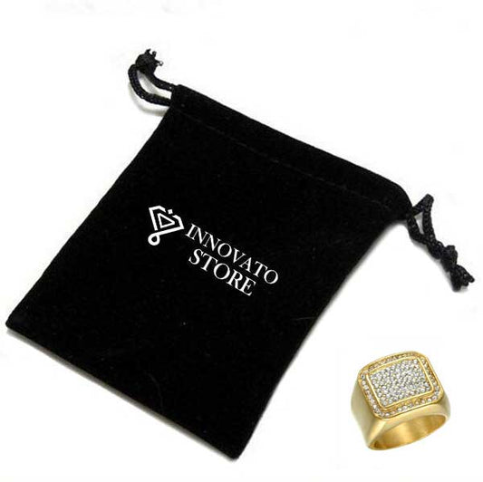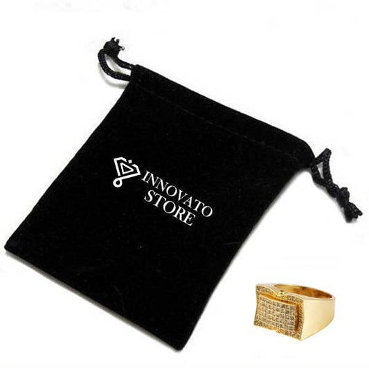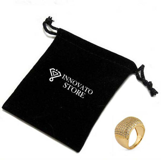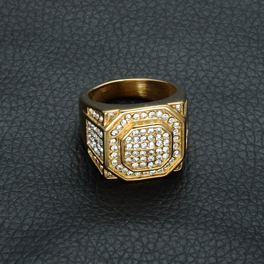 Hip Hop Micro Pave Ring with Multiple Rhinestones for Men Gold Plated