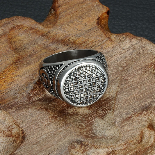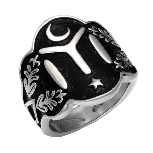 16.5mm Dual Tone Stainless Steel and Titanium Ottomans Seal Vintage Star Moon Men’s Rings