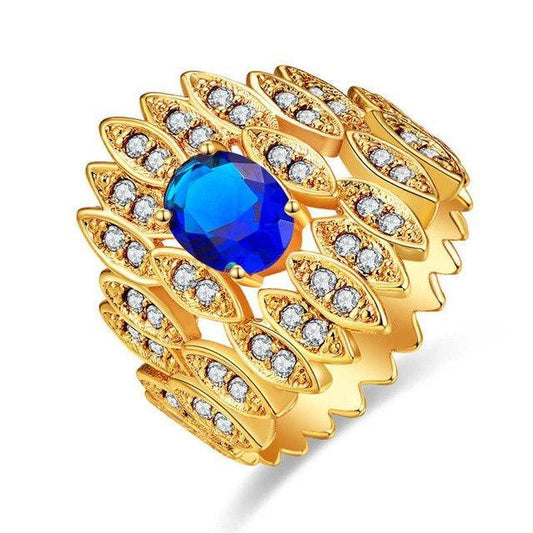 Silver & 18K White Gold Plated Multicolor and Blue Cubic Zirconia Crystals Inset Princess Crown Bridal Ring