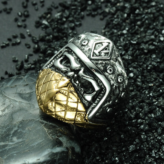 31mm Stainless Steel, Titanium with Gold and Black Tone Detailing Gothic Men’s Skull Wedding Band