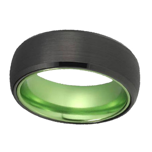 8mm Brushed Matte Black & Green Tungsten Carbide Wedding Band