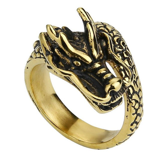 Gold and Black Toned Stainless Steel Gothic Eastern Fairy Dragon Unisex Wedding Band