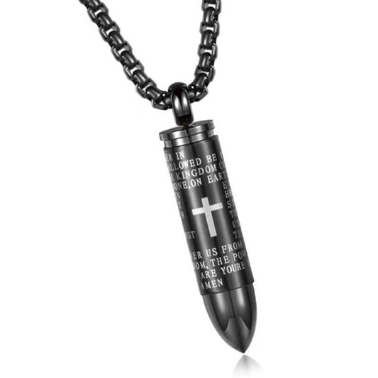 Golden Bullet Engraved Cross Ash Urn Pendant Memorial Necklace