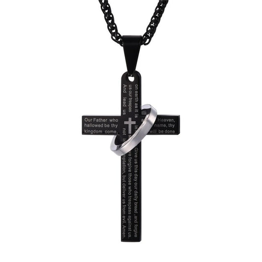 Stainless Steel Cross with Circle Lord's Prayer Pendant Necklace
