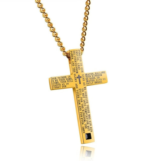 Stainless Steel Engraved Lord’s Prayer Cross Pendant Necklace