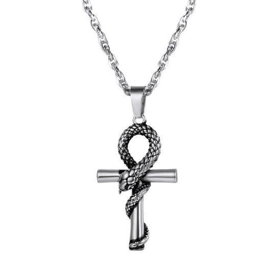 Egyptian Ankh Cross with Snake Pendant Necklace Men’s Jewelry