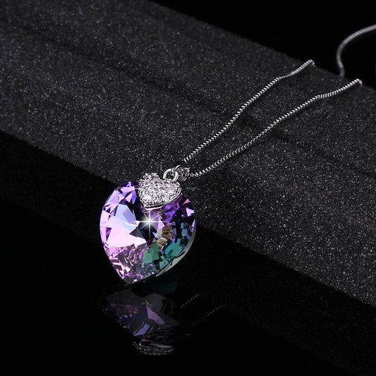 925 Sterling Silver Heart Amethyst with Swarovski Crystal Pendant Necklace
