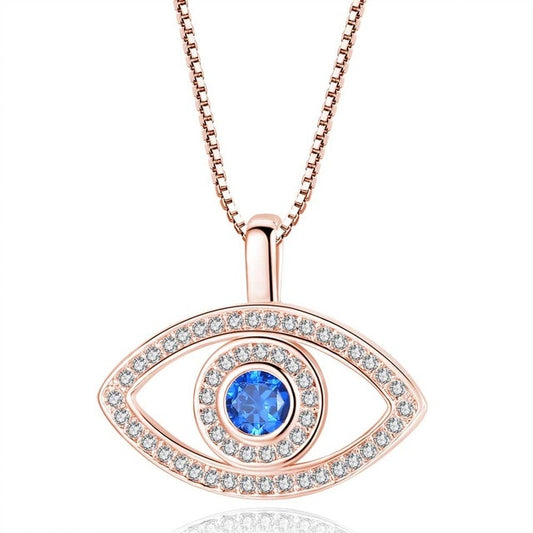 Evil Eye with Cubic Zirconia and Blue Rhinestone Pendant Necklace