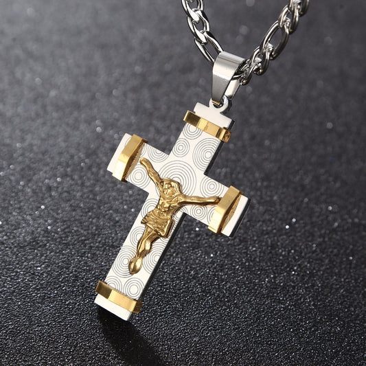 Gold and Silver Stainless Steel Jesus Christ Cross Pendant Necklace
