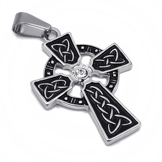 Men’s Irish Cross with Celtic Knot and Cubic Zirconia Pendant Necklace