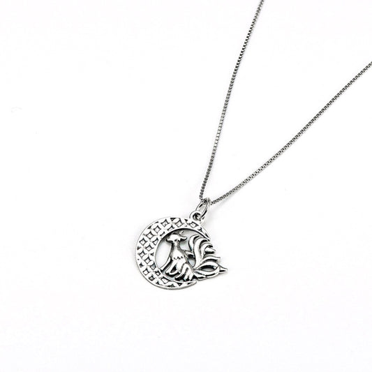 925 Sterling Silver Nine-Tailed Phoenix Fox Crescent Moon Pendant Necklace
