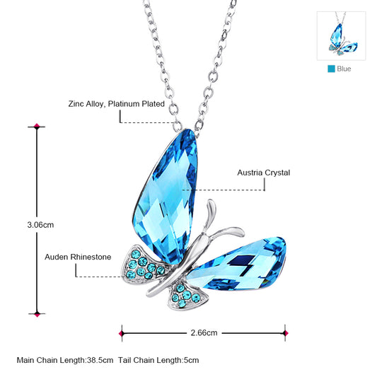 Sky Blue Austrian Crystal Elegant Butterfly Pendant Necklace