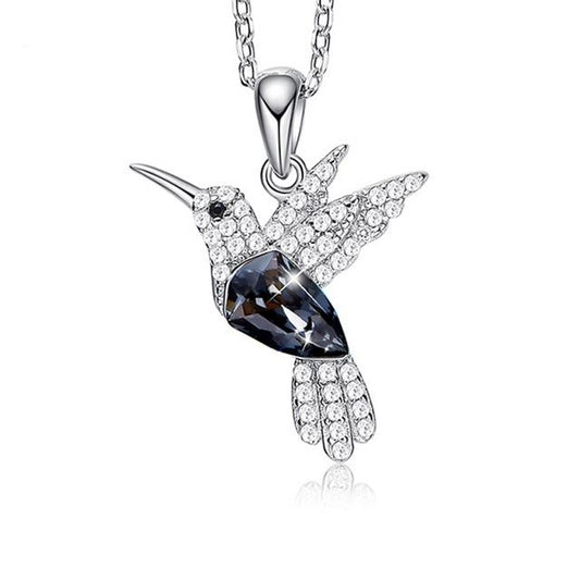 925 Sterling Silver Hummingbird with Crystals Necklace