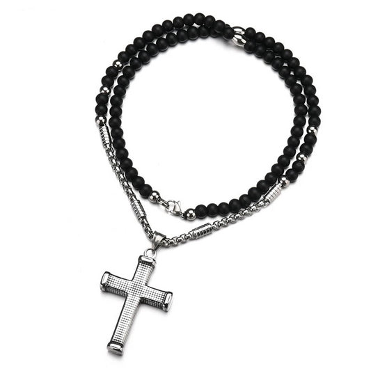 Beaded Catholic Rosario Chain Cross Pendant Necklace