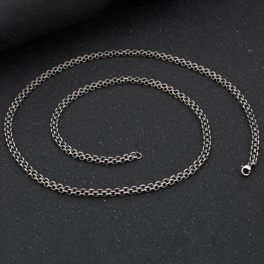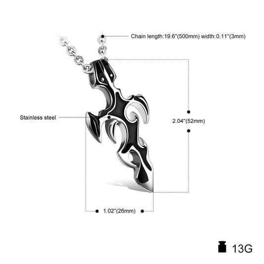 316L Stainless Steel Double Dragon Pendant Necklace with Black Zirconia