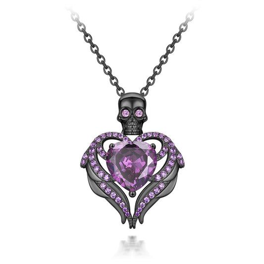 Skull and Cubic Zirconia & Crystal Heart Fashion Necklace