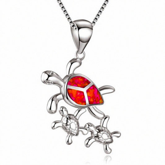 Blue Opal Sea Turtle Family Pendant Necklace Women’s Jewelry