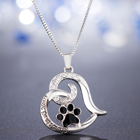 Puppy Paw Print Heart Necklace Women’s Jewelry