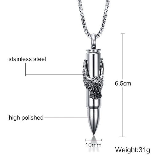 Stainless Steel Bullet with 3D Eagle or Scorpion Pendant for Men