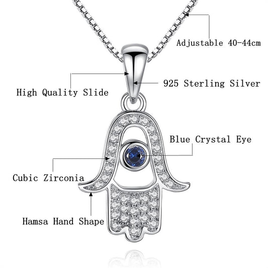 925 Sterling Silver Hamsa Hand with Blue Opal Pendant Necklace